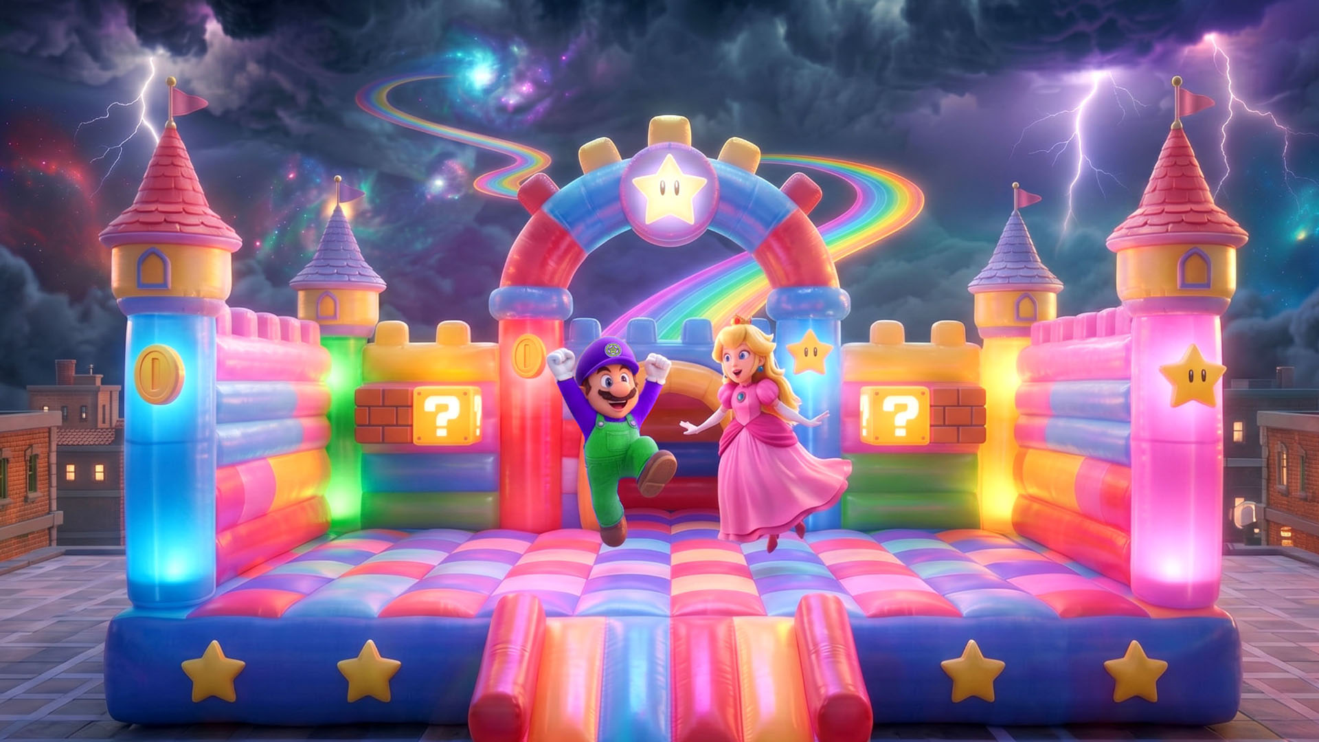 Per smagius žaidimus ir viktorinas vaikai pažins Super Marijono pasaulį, o vėliau pradės filmo istoriją ir sužinos pagrindinę misiją – sustabdyti Bauzerį. Dieną vainikuos aktyvus vandens mūšis ir klasikiniai Mario žaidimai.